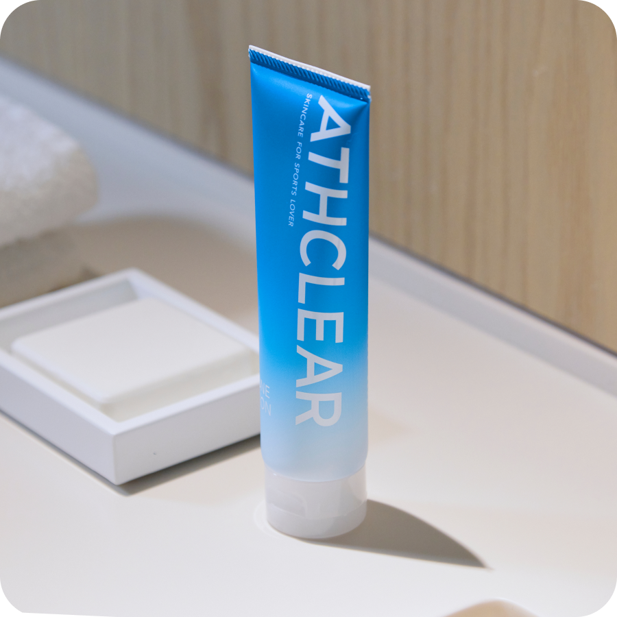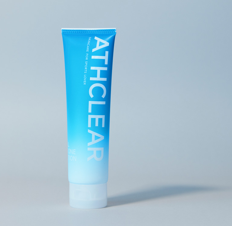 そして、カッコイイ身体作りだけでは飽きたらず、ツヤツヤの美肌を手に入れるために、スキンケアについて勉強を始めました。知識を増やすにつれて、運動する人特有の肌の特徴もわかってきました。運動する人に最適なスキンケアを作りたい、という想いで、2年の歳月を経て完成したのがオールインワンローション ATHCLEAR(アスクリア)なのです。