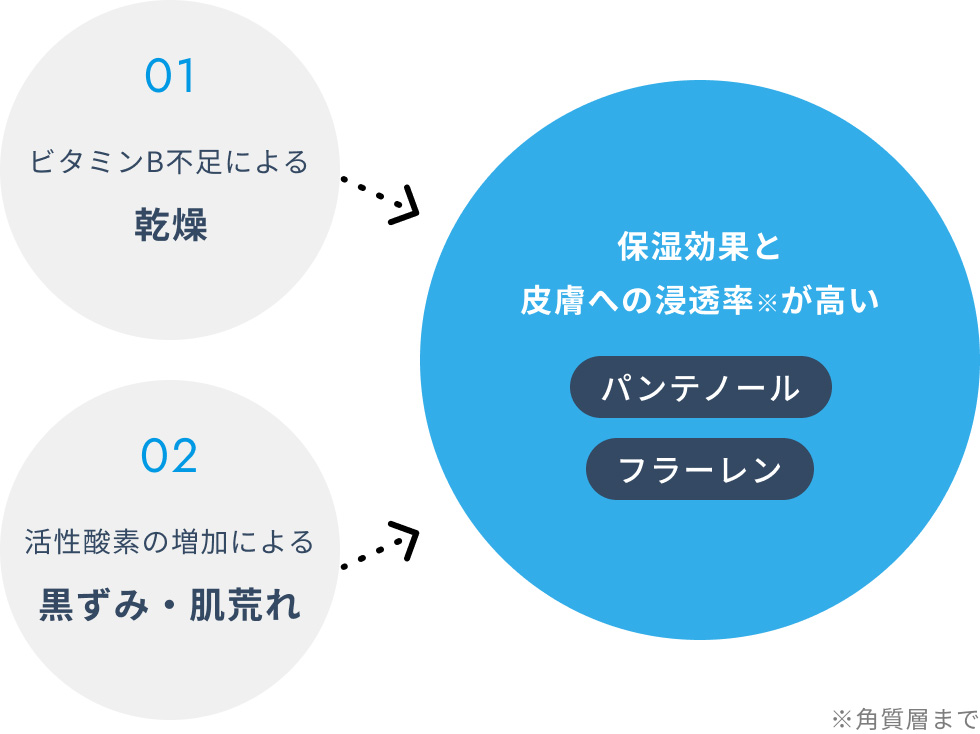 ビタミンB5不足は、乾燥肌、肌荒れの